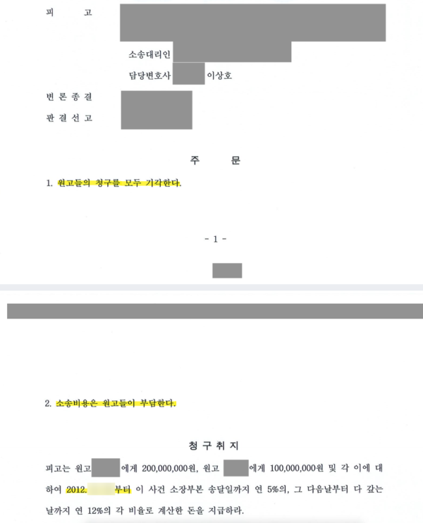 ▶ 소송결과 : 전부승소(피고승), 소송비용 모두 원고 부담